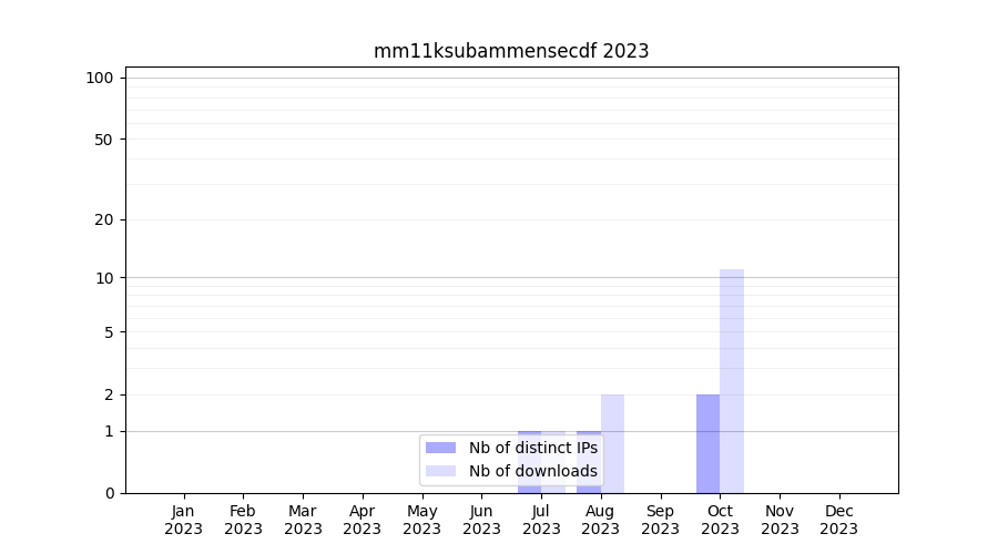Number of downloads for annotation package mm11ksubammensecdf, year by year, from 2025 back to 2014 (years with no downloads are omitted):