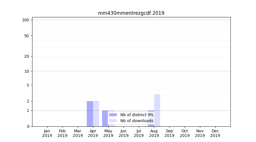 Number of downloads for annotation package mm430mmentrezgcdf, year by year, from 2025 back to 2014 (years with no downloads are omitted):