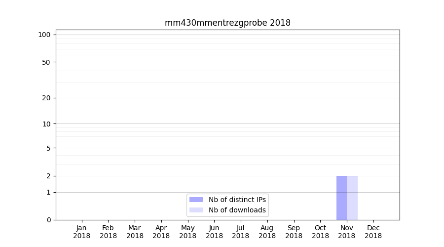 Number of downloads for annotation package mm430mmentrezgprobe, year by year, from 2025 back to 2014 (years with no downloads are omitted):