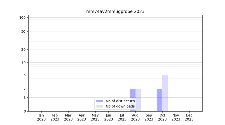 Number of downloads for annotation package mm74av2mmugprobe, year by year, from 2025 back to 2014 (years with no downloads are omitted):