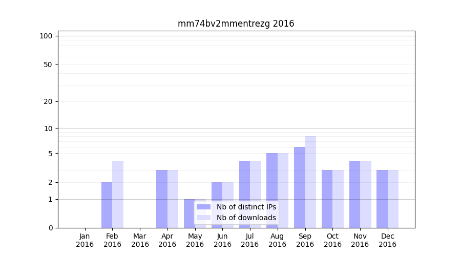 Number of downloads for annotation package mm74bv2mmentrezg, year by year, from 2025 back to 2014 (years with no downloads are omitted):