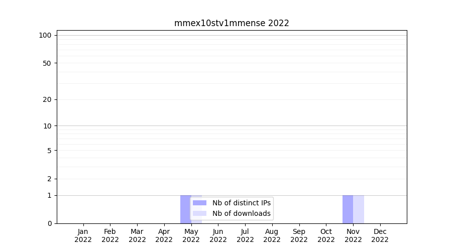 Number of downloads for annotation package mmex10stv1mmense, year by year, from 2025 back to 2014 (years with no downloads are omitted):