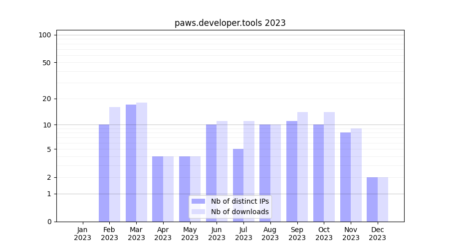 paws.developer.tools_2023_stats.tab| Month | Nb of distinct IPs | Nb of downloads |