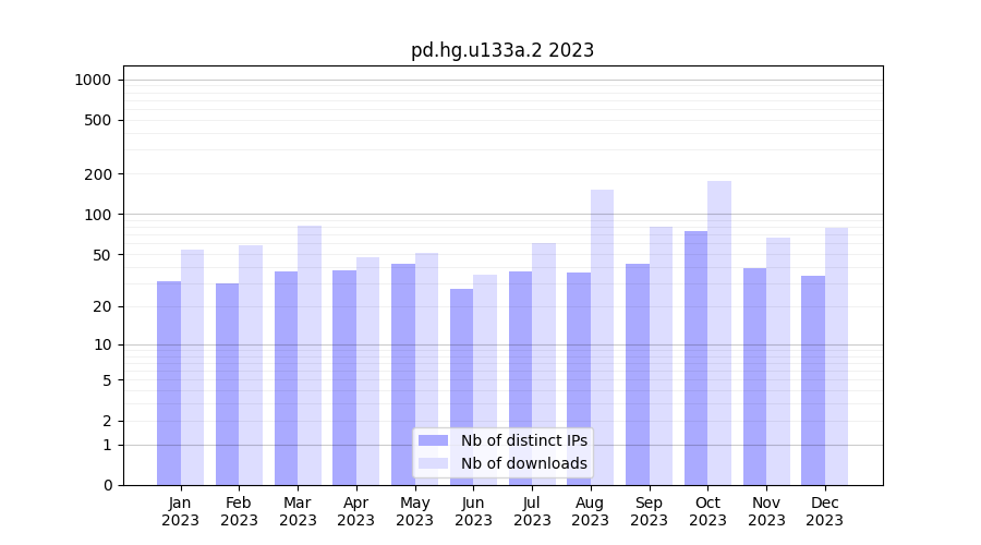 pd.hg.u133a.2_2023_stats.tab| Month | Nb of distinct IPs | Nb of downloads |