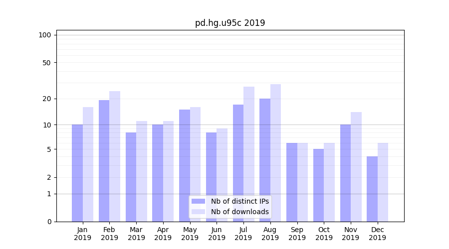 pd.hg.u95c_2019_stats.tab| Month | Nb of distinct IPs | Nb of downloads |