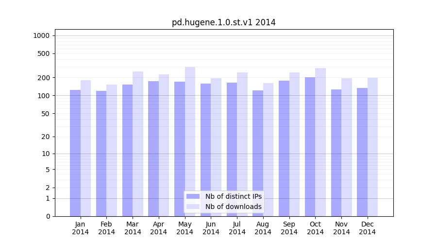 pd.hugene.1.0.st.v1_2014_stats.tab| Month | Nb of distinct IPs | Nb of downloads |