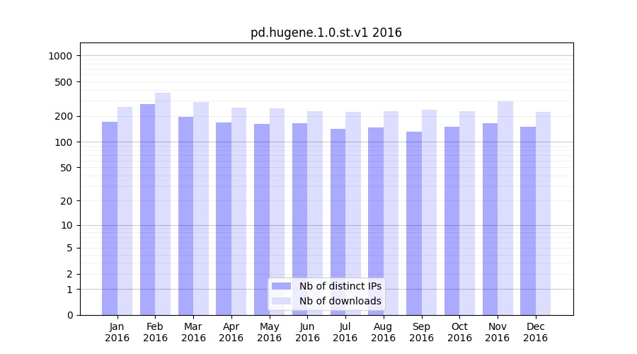 pd.hugene.1.0.st.v1_2016_stats.tab| Month | Nb of distinct IPs | Nb of downloads |