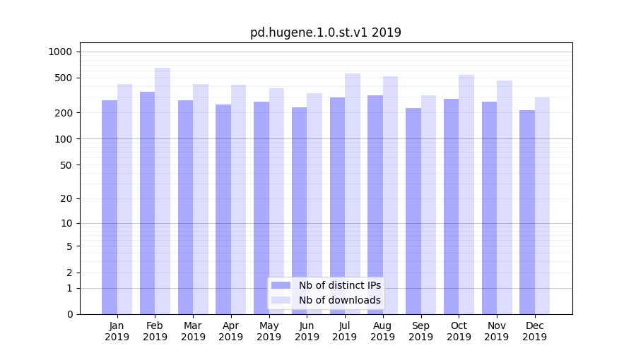 pd.hugene.1.0.st.v1_2019_stats.tab| Month | Nb of distinct IPs | Nb of downloads |