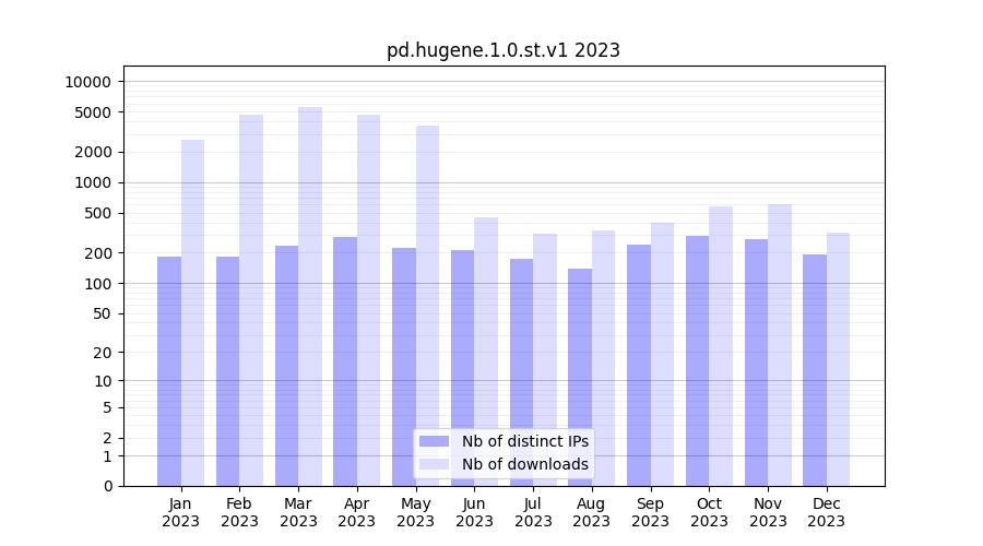 pd.hugene.1.0.st.v1_2023_stats.tab| Month | Nb of distinct IPs | Nb of downloads |