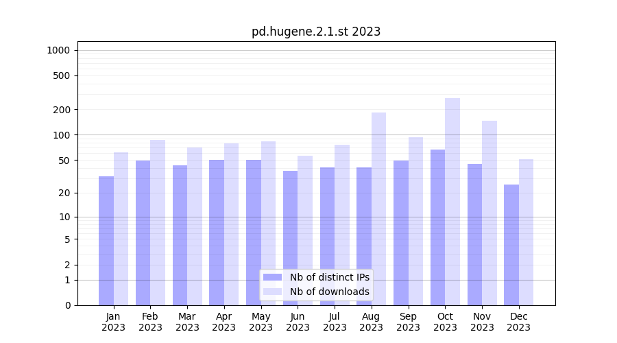 pd.hugene.2.1.st_2023_stats.tab| Month | Nb of distinct IPs | Nb of downloads |
