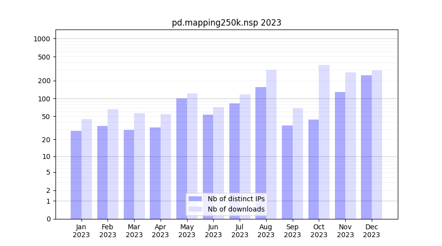 pd.mapping250k.nsp_2023_stats.tab| Month | Nb of distinct IPs | Nb of downloads |