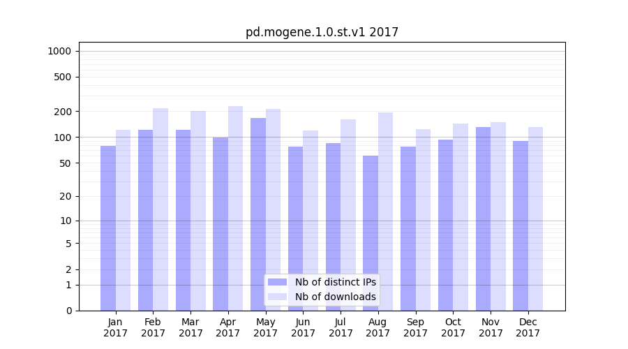 pd.mogene.1.0.st.v1_2017_stats.tab| Month | Nb of distinct IPs | Nb of downloads |