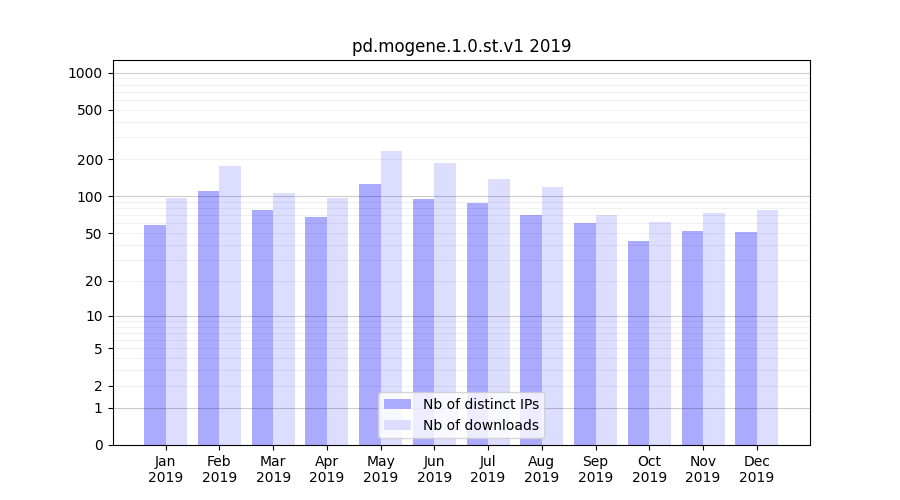 pd.mogene.1.0.st.v1_2019_stats.tab| Month | Nb of distinct IPs | Nb of downloads |
