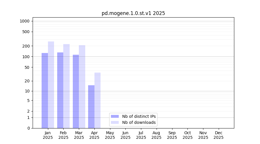 pd.mogene.1.0.st.v1_2025_stats.tab| Month | Nb of distinct IPs | Nb of downloads |
