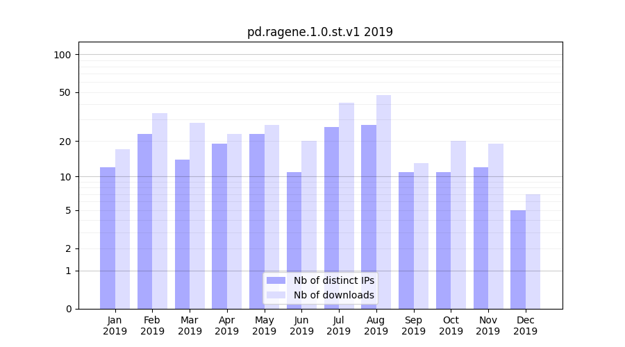 pd.ragene.1.0.st.v1_2019_stats.tab| Month | Nb of distinct IPs | Nb of downloads |
