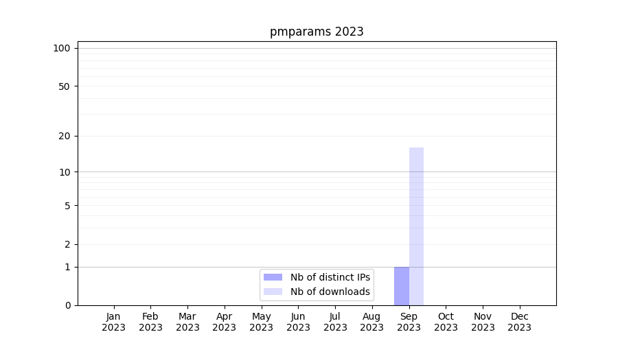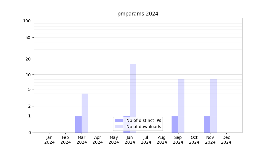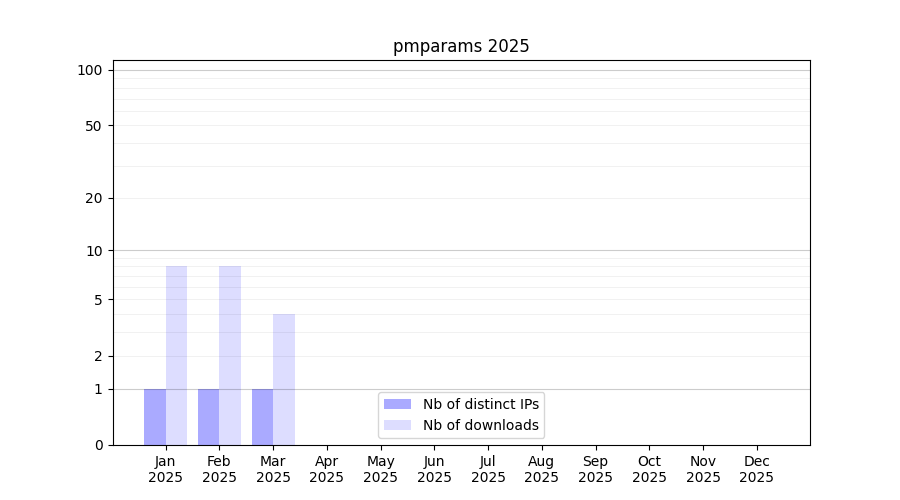 Number of downloads for annotation package pmparams, year by year, from 2025 back to 2014 (years with no downloads are omitted):