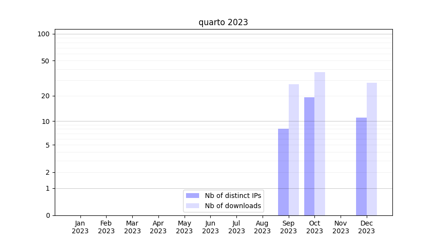 quarto_2023_stats.tab| Month | Nb of distinct IPs | Nb of downloads |