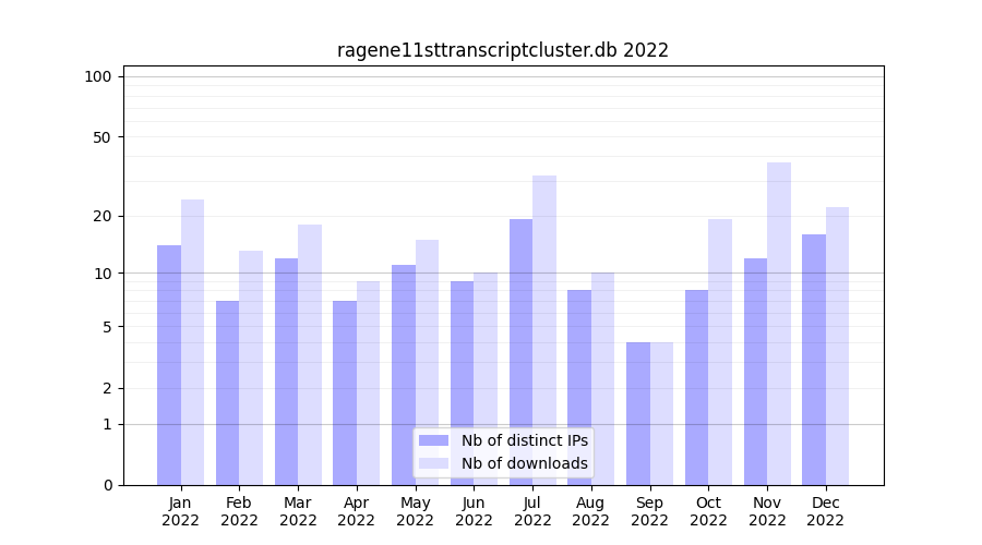 ragene11sttranscriptcluster.db_2022_stats.tab| Month | Nb of distinct IPs | Nb of downloads |