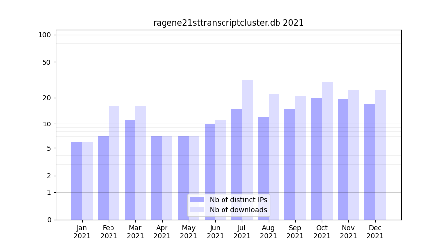 ragene21sttranscriptcluster.db_2021_stats.tab| Month | Nb of distinct IPs | Nb of downloads |