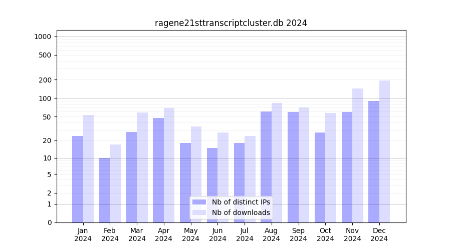 ragene21sttranscriptcluster.db_2024_stats.tab| Month | Nb of distinct IPs | Nb of downloads |