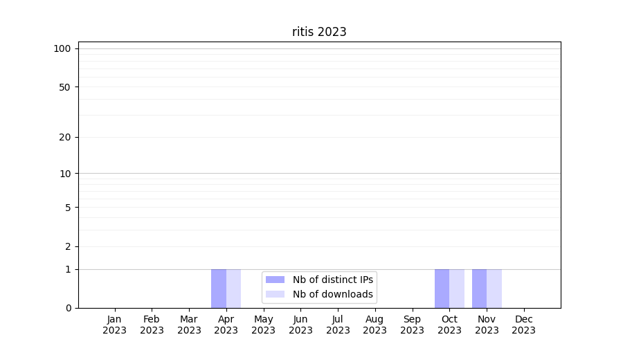 Number of downloads for annotation package ritis, year by year, from 2025 back to 2014 (years with no downloads are omitted):