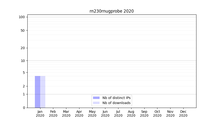 Number of downloads for annotation package rn230rnugprobe, year by year, from 2025 back to 2014 (years with no downloads are omitted):