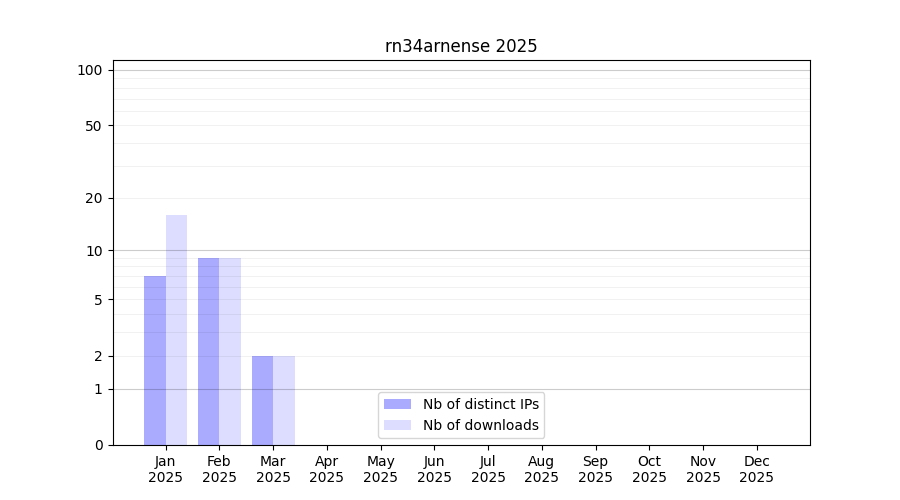 Number of downloads for annotation package rn34arnense, year by year, from 2025 back to 2014 (years with no downloads are omitted):