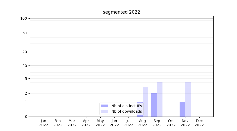 Number of downloads for annotation package segmented, year by year, from 2025 back to 2014 (years with no downloads are omitted):