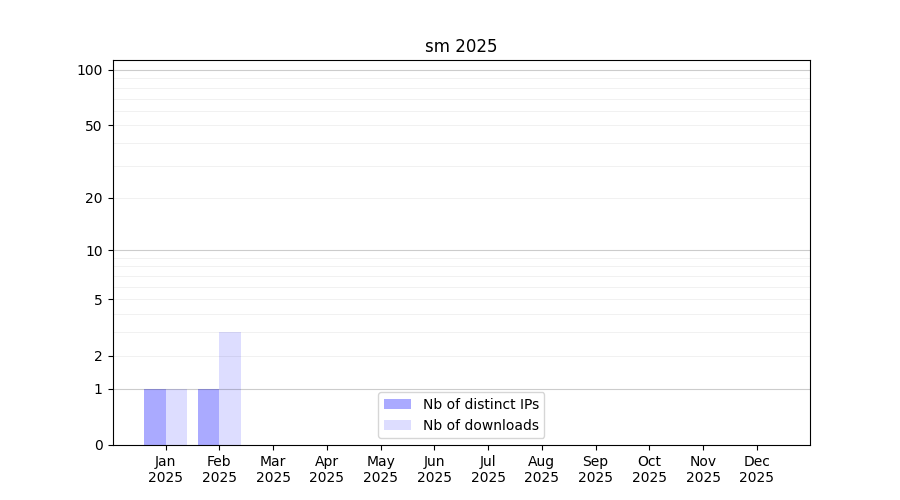 Number of downloads for annotation package sm, year by year, from 2025 back to 2014 (years with no downloads are omitted):