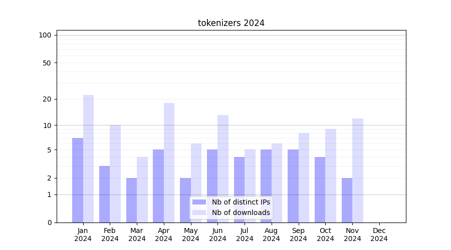 Number of downloads for annotation package tokenizers, year by year, from 2025 back to 2014 (years with no downloads are omitted):