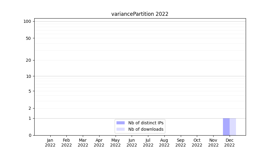 Number of downloads for annotation package variancePartition, year by year, from 2025 back to 2014 (years with no downloads are omitted):