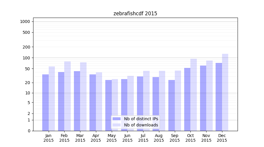 zebrafishcdf_2015_stats.tab| Month | Nb of distinct IPs | Nb of downloads |