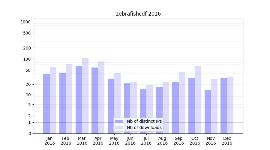 zebrafishcdf_2016_stats.tab| Month | Nb of distinct IPs | Nb of downloads |