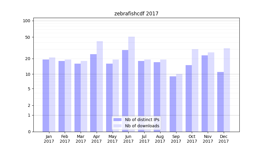 zebrafishcdf_2017_stats.tab| Month | Nb of distinct IPs | Nb of downloads |