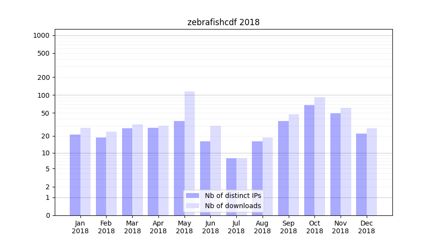 zebrafishcdf_2018_stats.tab| Month | Nb of distinct IPs | Nb of downloads |
