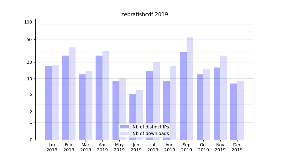 zebrafishcdf_2019_stats.tab| Month | Nb of distinct IPs | Nb of downloads |