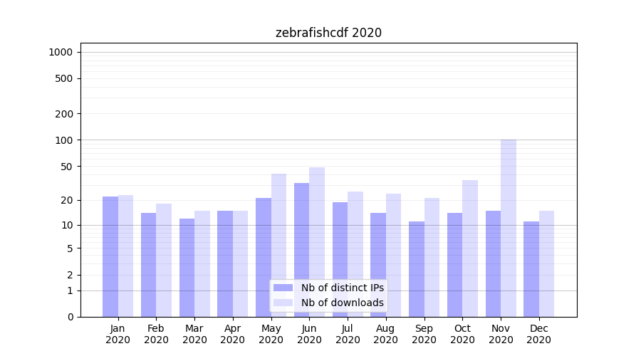zebrafishcdf_2020_stats.tab| Month | Nb of distinct IPs | Nb of downloads |
