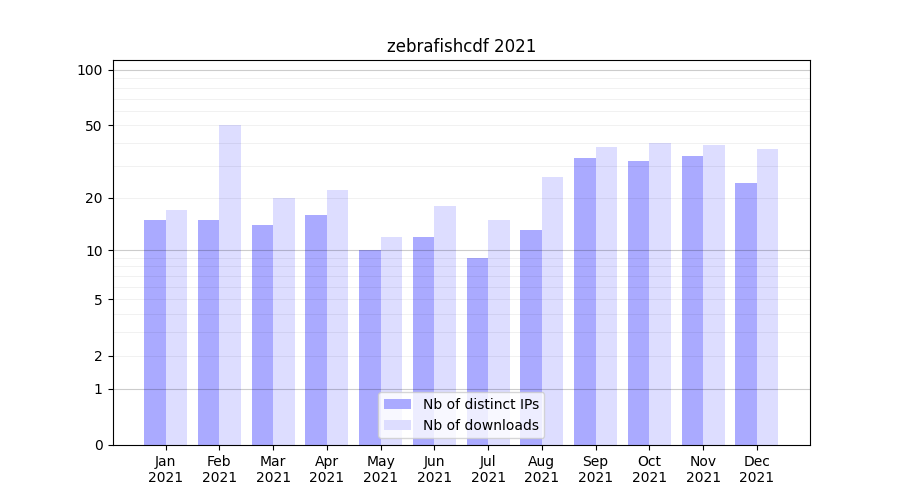 zebrafishcdf_2021_stats.tab| Month | Nb of distinct IPs | Nb of downloads |