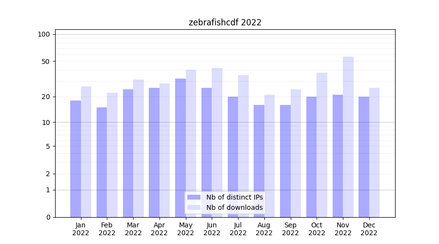 zebrafishcdf_2022_stats.tab| Month | Nb of distinct IPs | Nb of downloads |