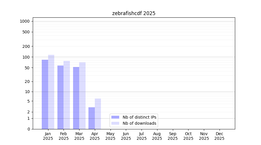 zebrafishcdf_2025_stats.tab| Month | Nb of distinct IPs | Nb of downloads |