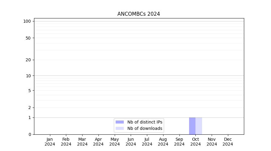 Number of downloads for experiment package ANCOMBCs, year by year, from 2025 back to 2014 (years with no downloads are omitted):