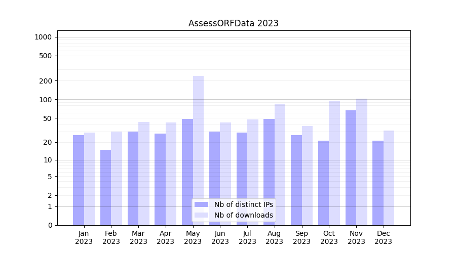 AssessORFData_2023_stats.tab| Month | Nb of distinct IPs | Nb of downloads |