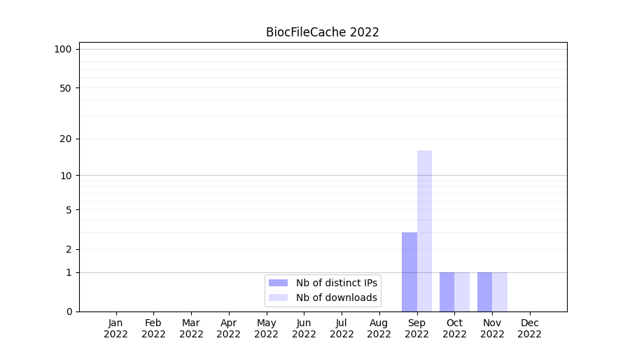 BiocFileCache_2022_stats.tab| Month | Nb of distinct IPs | Nb of downloads |