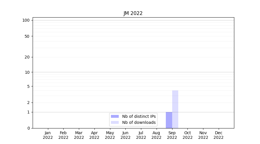 Number of downloads for experiment package JM, year by year, from 2025 back to 2014 (years with no downloads are omitted):