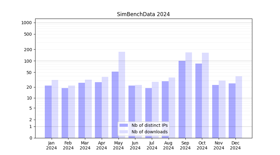 SimBenchData_2024_stats.tab| Month | Nb of distinct IPs | Nb of downloads |
