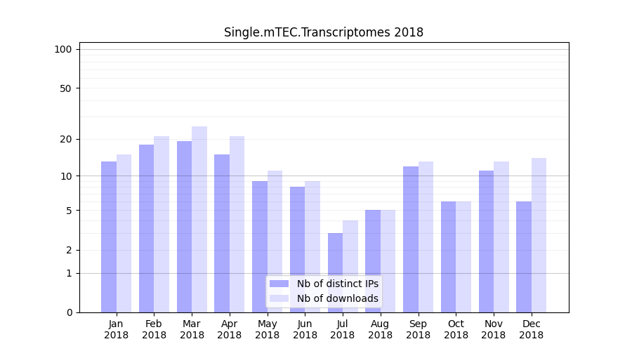 Single.mTEC.Transcriptomes_2018_stats.tab| Month | Nb of distinct IPs | Nb of downloads |