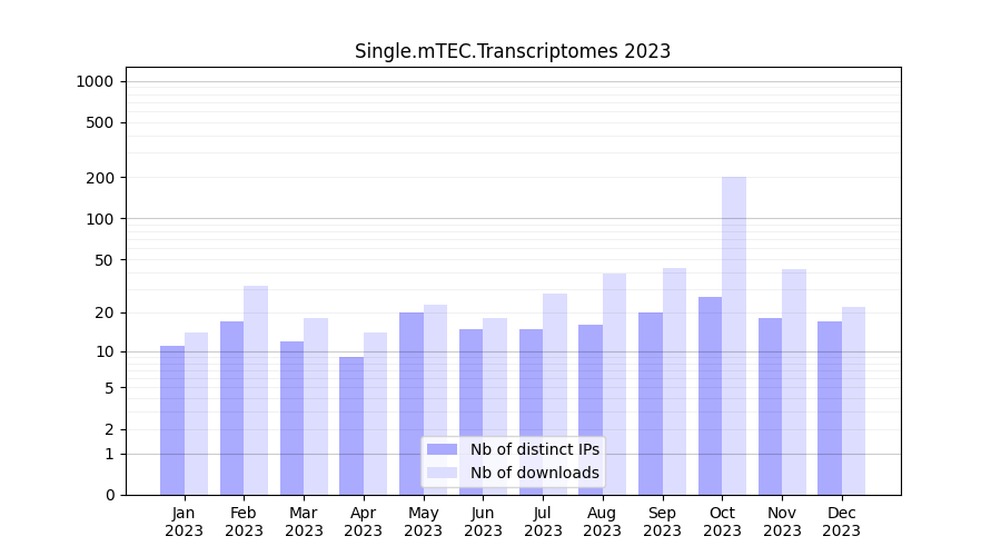 Single.mTEC.Transcriptomes_2023_stats.tab| Month | Nb of distinct IPs | Nb of downloads |