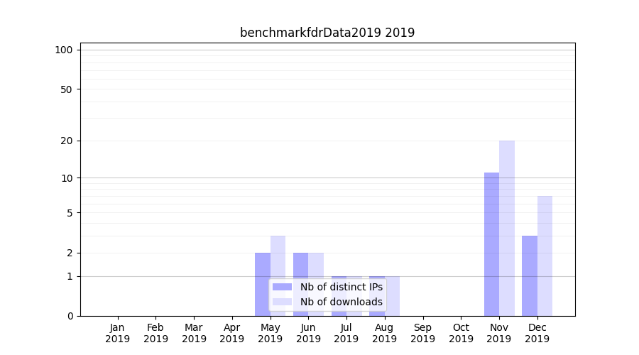 benchmarkfdrData2019_2019_stats.tab| Month | Nb of distinct IPs | Nb of downloads |