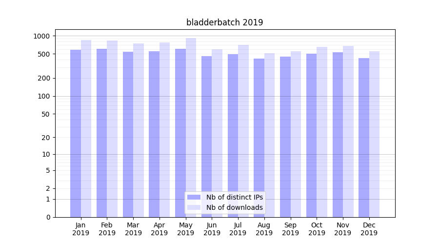 bladderbatch_2019_stats.tab| Month | Nb of distinct IPs | Nb of downloads |