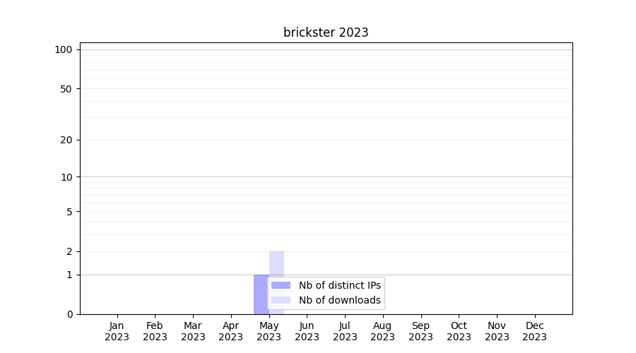 Number of downloads for experiment package brickster, year by year, from 2025 back to 2014 (years with no downloads are omitted):